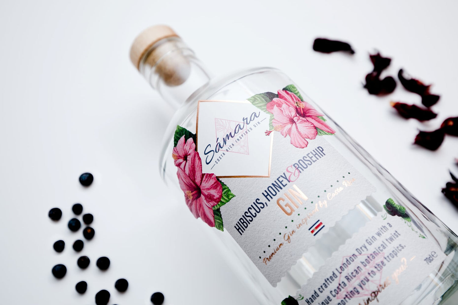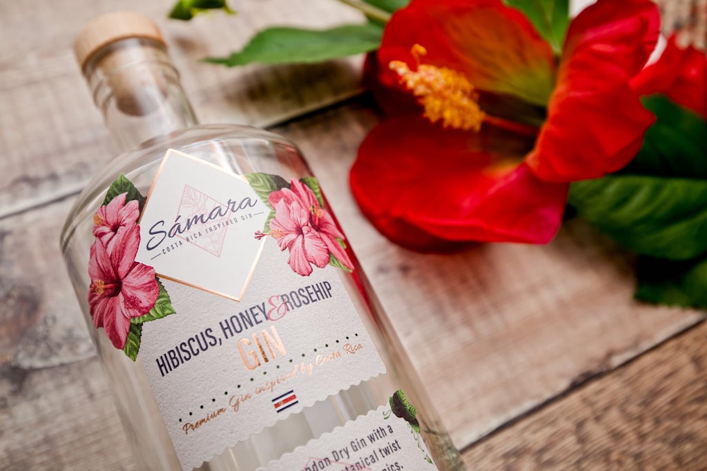 Samara Premium London Dry Gin inspired by Costa Rica, Hibiskus, Honig und Hagebutte.