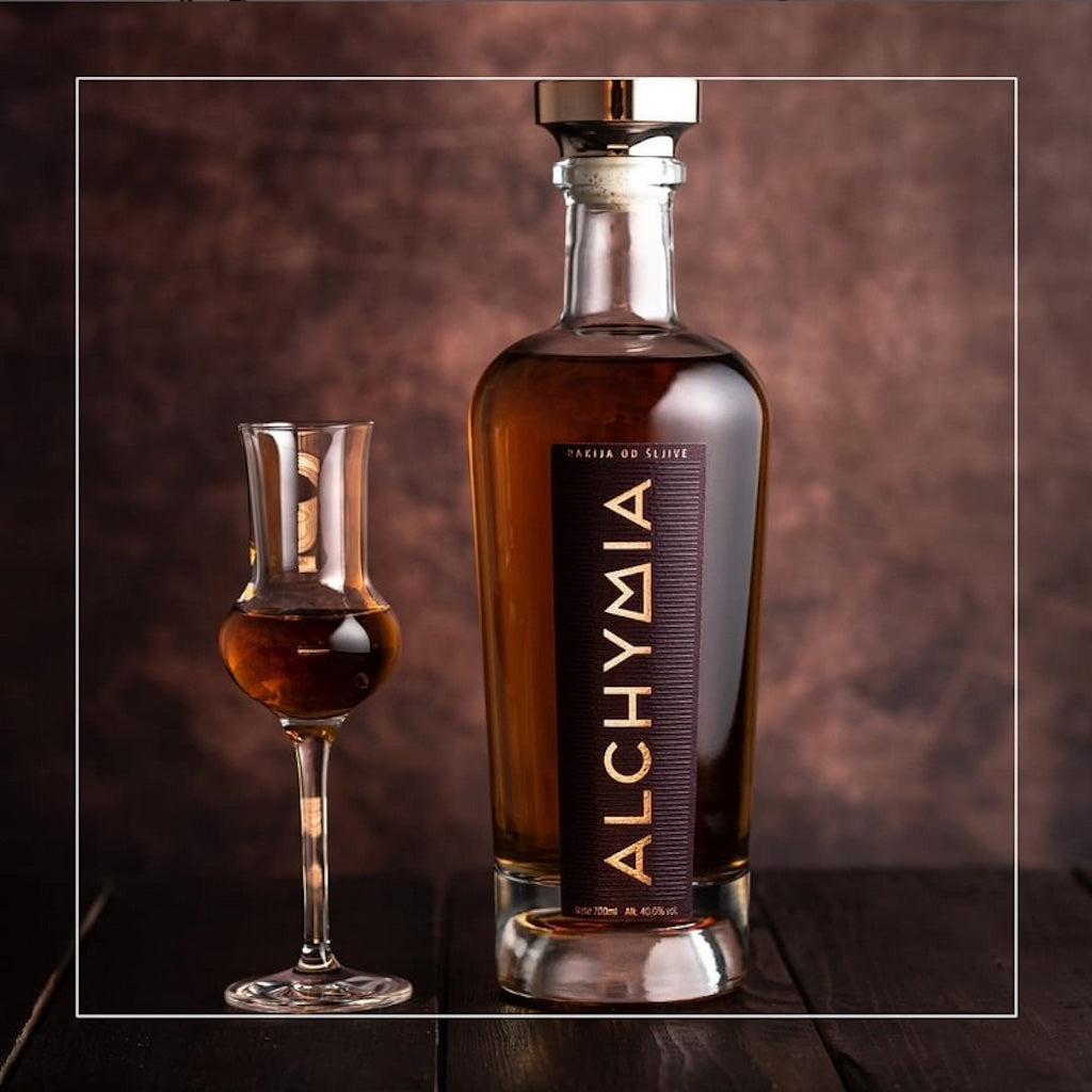 Seinen Namen erhielt „Alchymia Rakia“ von einer uralten Geschichte, als Händler, Gelehrte, Künstler und Handwerker noch über die Alpen reisten, um ihr Wissen und ihre Waren feilzubieten. So kam auch einst ein Wanderer zum Hof im serbischen Rusanj. Er sei Alchemist, wie er die neugierigen Fragen beantwortete, und Naturphilosoph. Er nehme, was er fände, und verwandle es zu etwas Wertvollerem, als es zuvor gewesen sei. So brachte man ihm sonnengereifte Pflaumen und vor aller Augen verwandelte er diese durch Pressen, Sieden und Destillieren in eine Flüssigkeit, die die Dorfbewohner lange lagern sollten, um es sie dann zu kosten. Ein goldfarbenes Lebenselixier würden sie zu genießen bekommen und so tat die Familie, wie ihr vom Alchemisten geheißen und sie erhielt einen großartigen Obstbrand, den sie nach seinem Beruf benannte – „Alchymia Rakia“, der Schnaps des Alchemisten. Probieren Sie ihn und überzeugen Sie sich selbst von seiner Hochwertigkeit!
